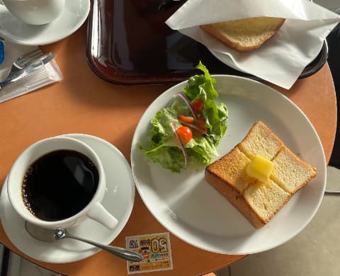 厚切りトーストとホットコーヒー。